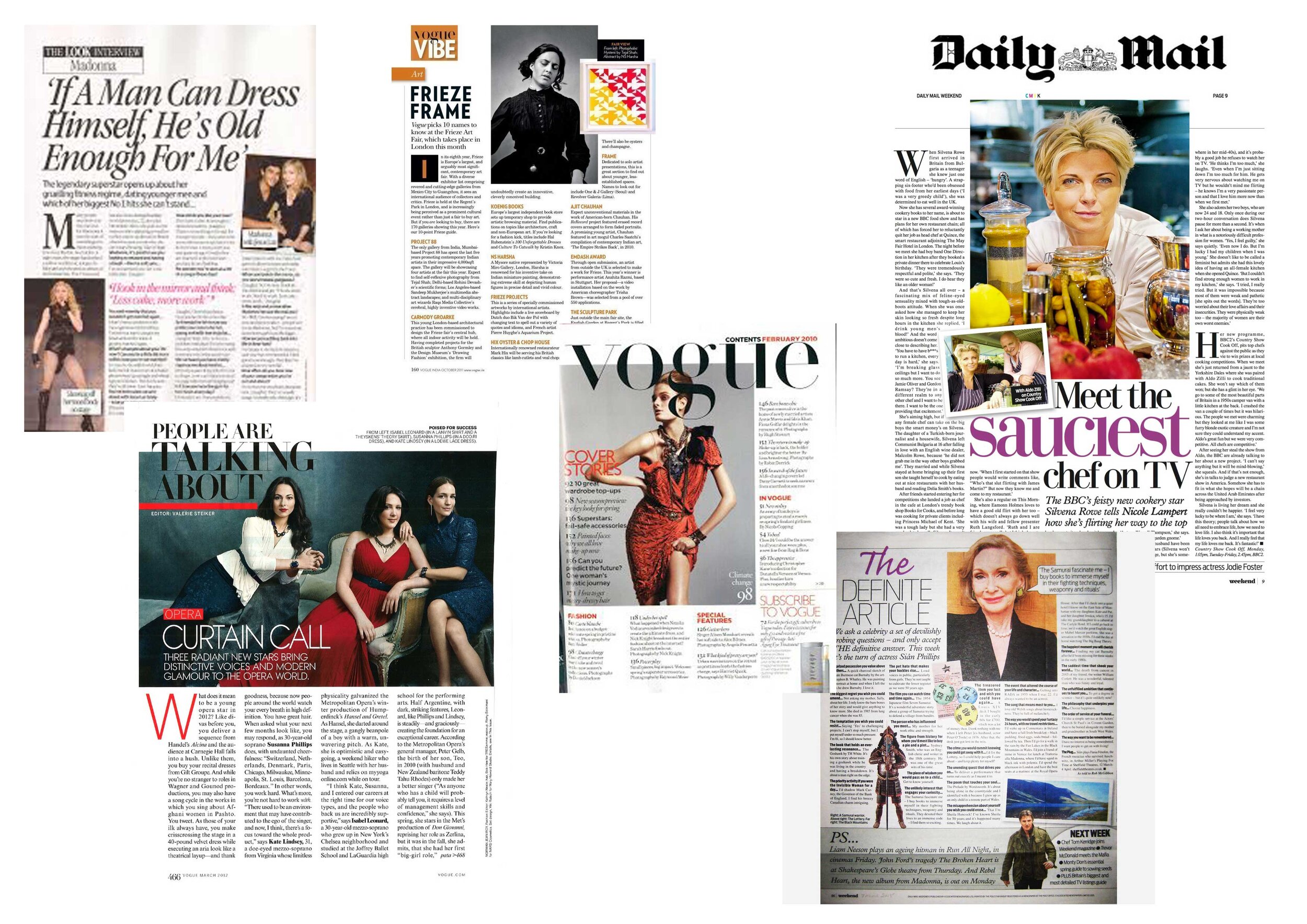I began this task by collecting magazine/newspaper articles from fashion/gossip media. I next went through and used some to identify which typefaces to use/how to compose my article.