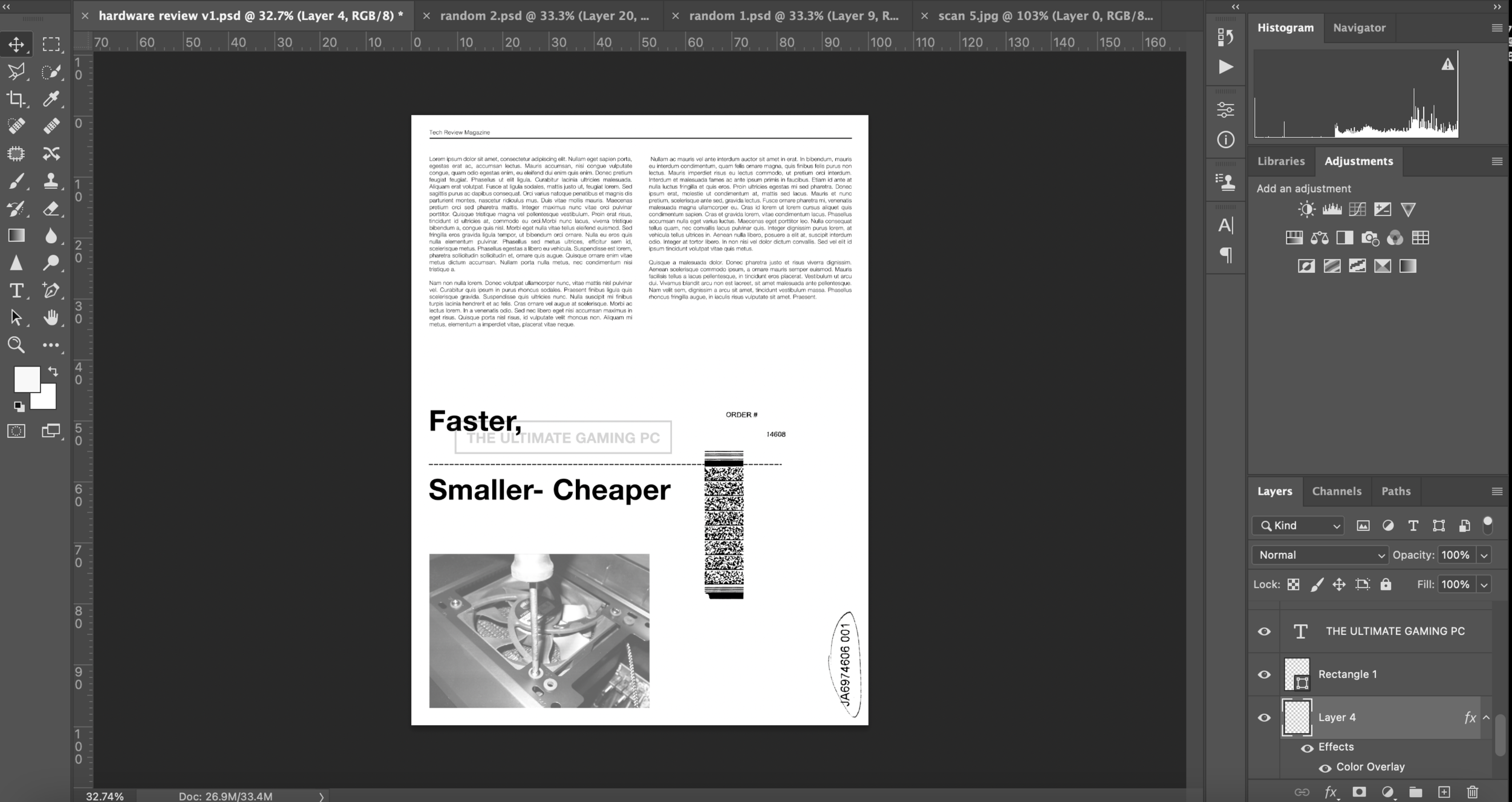 I continued with researching interesting compositions/layouts of articles and magazines. I found some different looking, more modern layouts that I will draw inspiration from. I searched through various images of computers/ hardware when looking for a topic/ focus for the magazine review and came across an article about a gaming PC. This topic is something I know nothing about, but I was drawn in by the interesting imagery of the hardware.