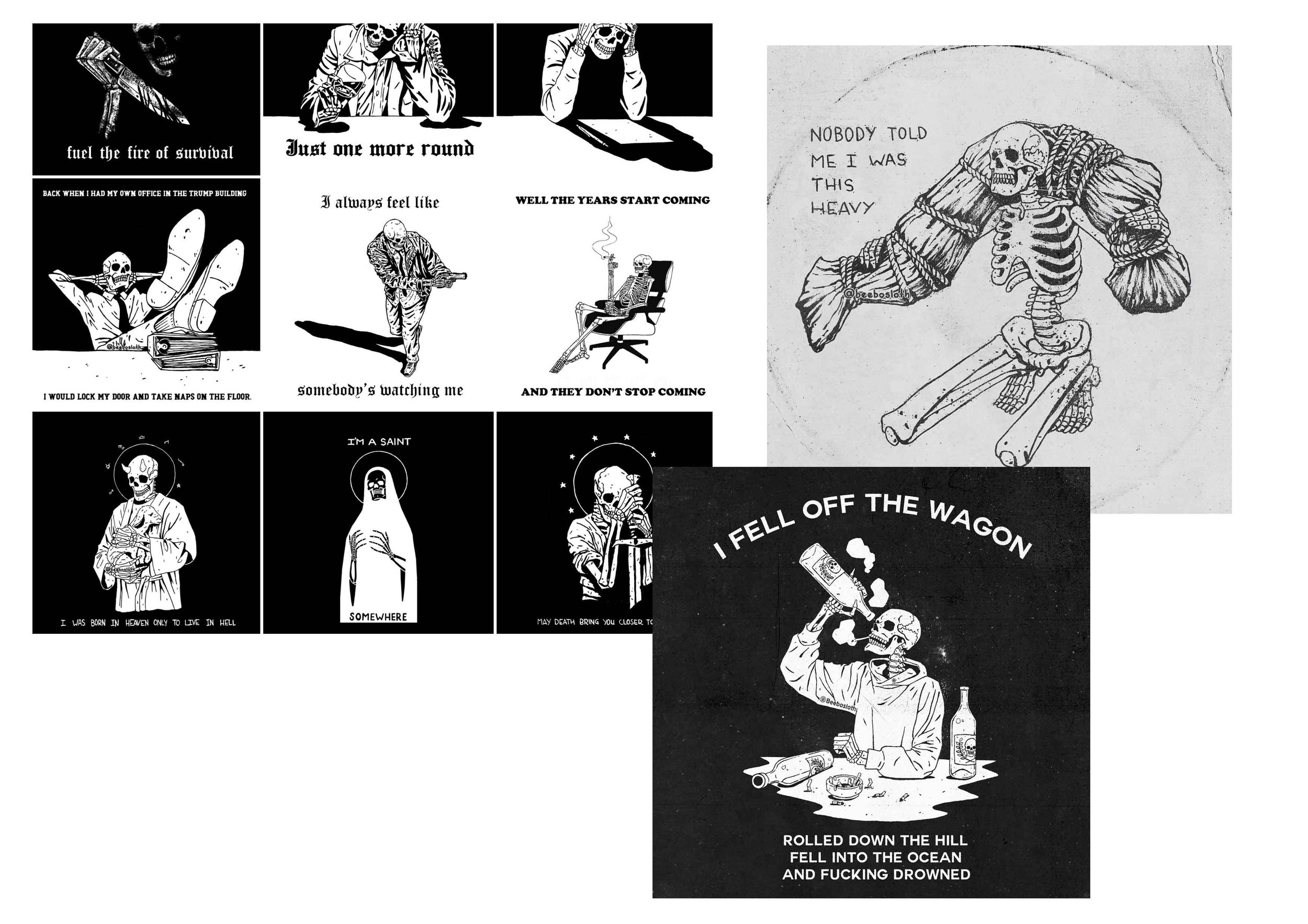 The above couple of mood boards are from Stanislav Osipov an artist whose work is often used for tattoos. I really like the bold line/mono colour look.