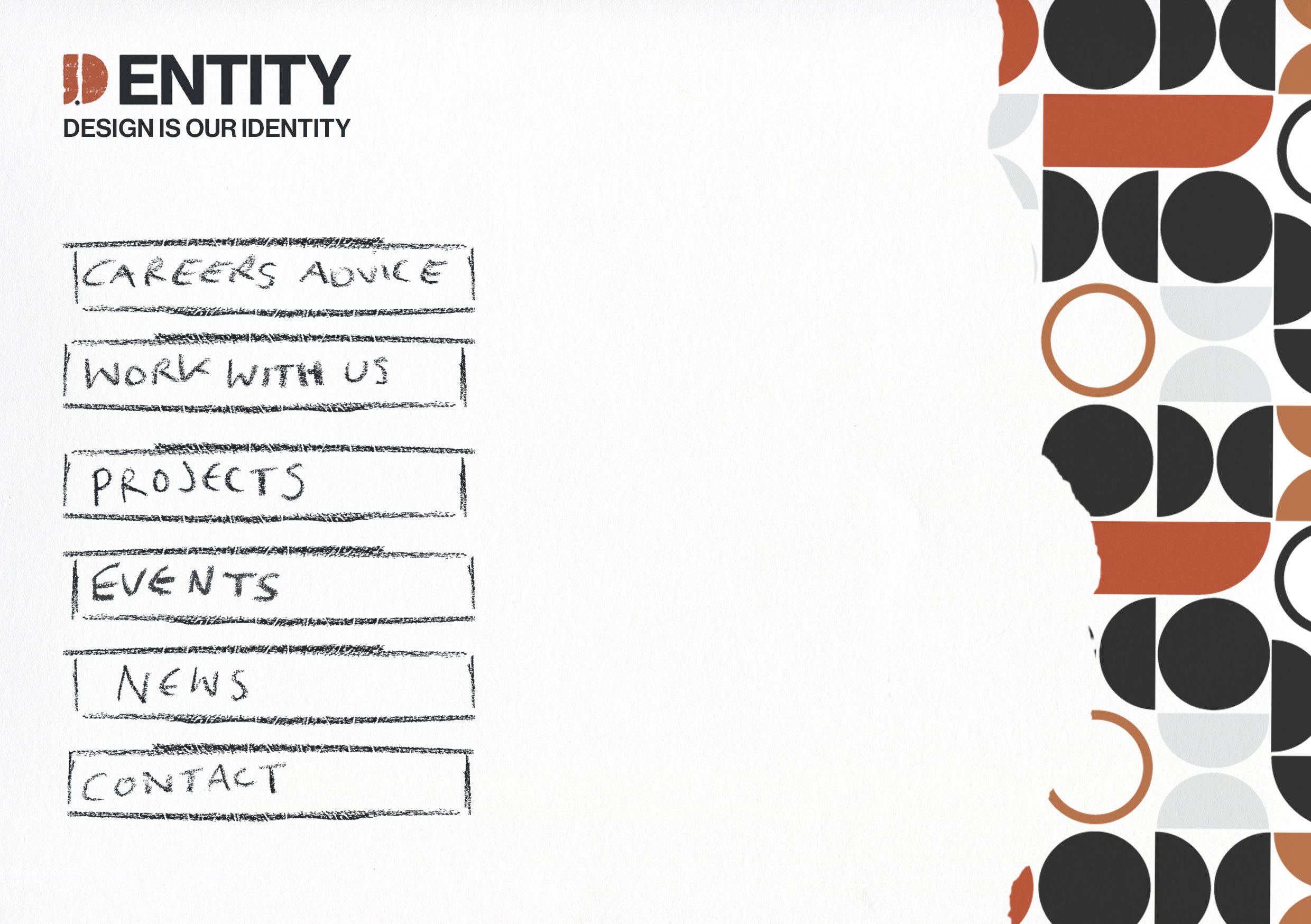 After further thinking and having some initial logo ideas, I decided on a name combining the 2 words ‘design’ and ‘identity’- ‘Dentity’ a company who helps people begin and further their graphic design careers.